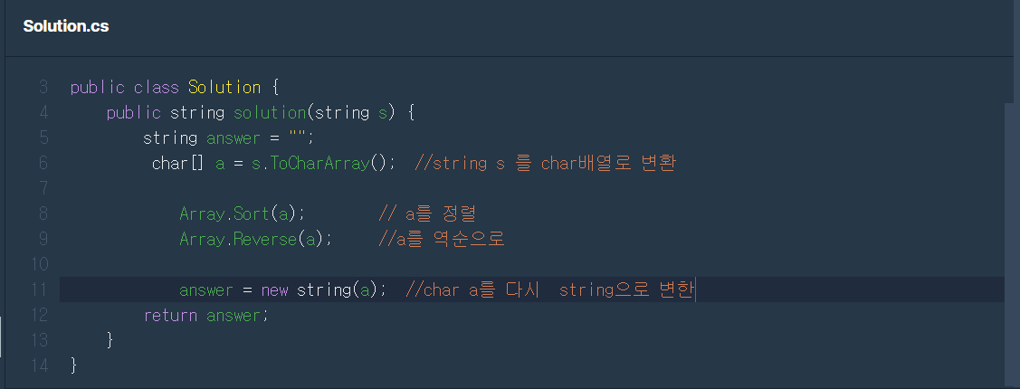 char[] a = s.ToCharArray(); //string s 를 char배열로 변환