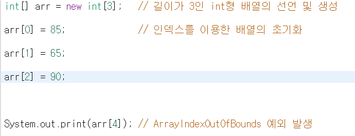 → ArrayIndexOutofBounds 예외 발생