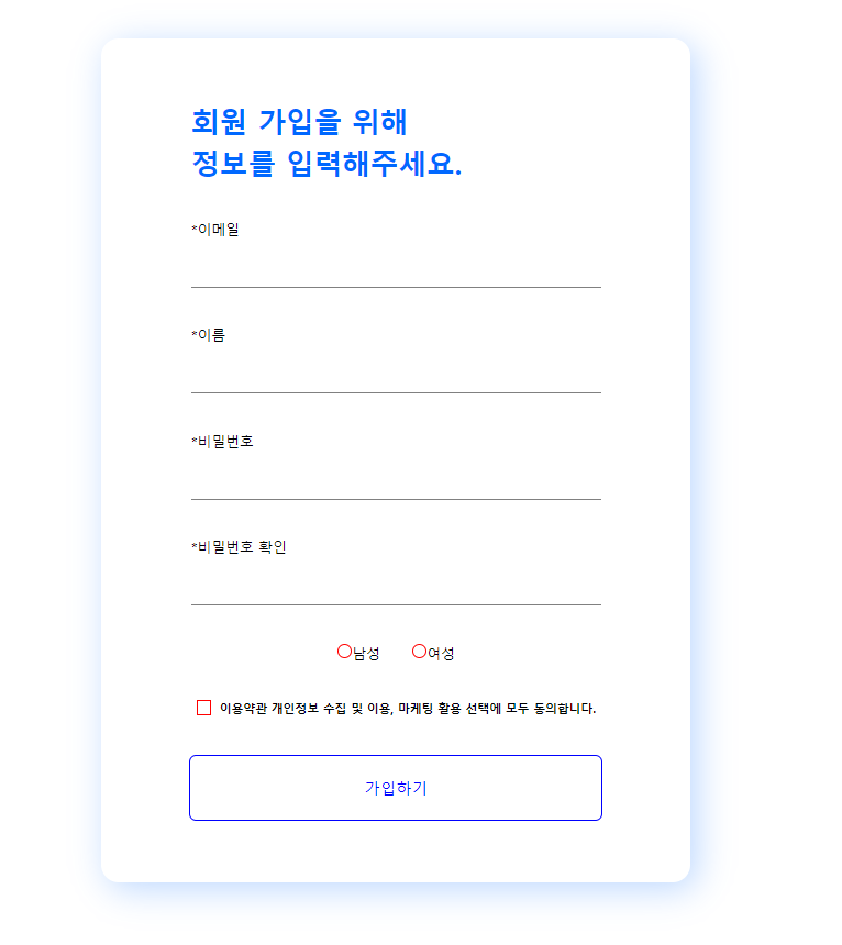 인프런의 프리캠프라는 강의를 통해서 제공받은 Figma를 이용하여, 회원가입 폼을 구현해봤습니다.