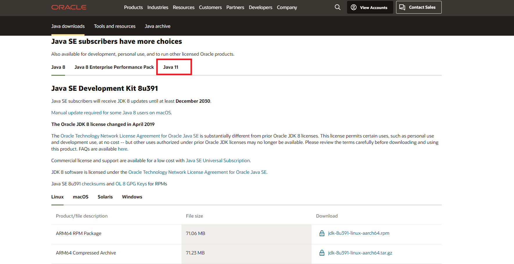 java21이 아닌 11을 찾아 다운로드하면 된다.