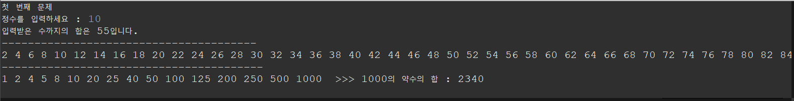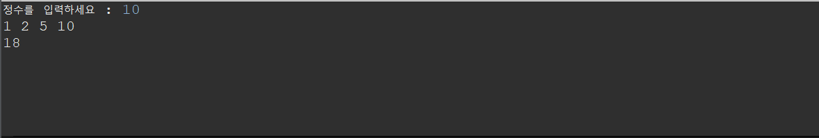 // 정수를 입력받아, 입력한 수의 약수의 합계를 출력한다.