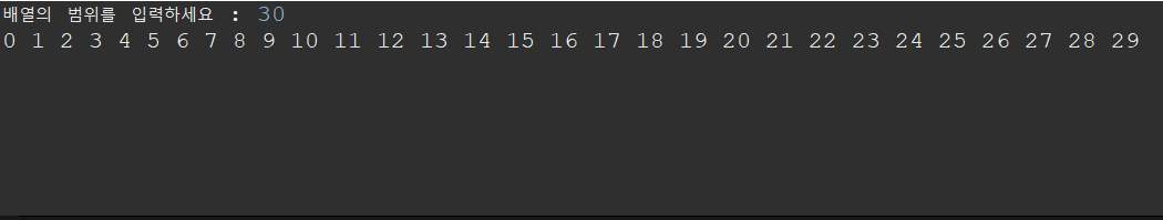 - 초깃값 없이 배열 변수를 만들 때에는 숫잣값을 넣어 길이를 정해 줘야 한다. 그렇지 않으면 오류가 발생한다.