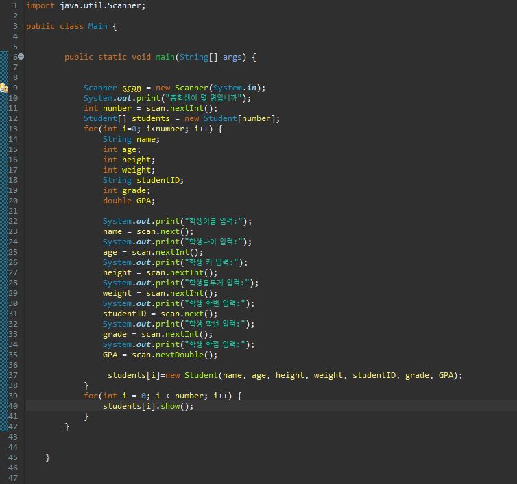 마지막에 배열과 반복문을 사용하여 총 학생 수를 입력한 이후 그에 해당하는 수 만큼의 입력을 받을 수 있게 설정