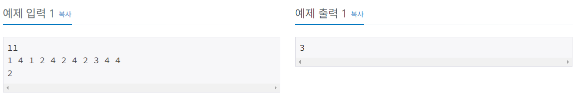 - 첫째 줄에 입력으로 주어진 N개의 정수 중에 v가 몇 개인지 출력한다.