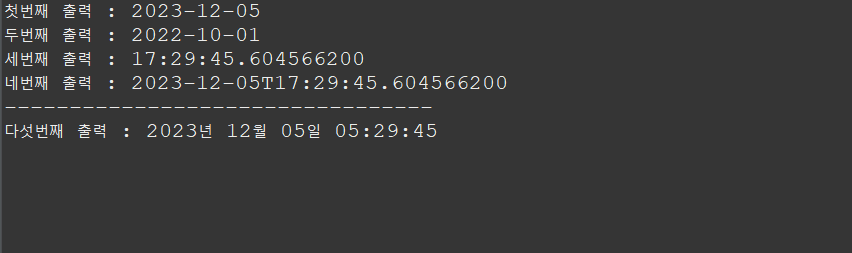 System.out.println("다섯번째 출력 : " + now4.format(dtf));