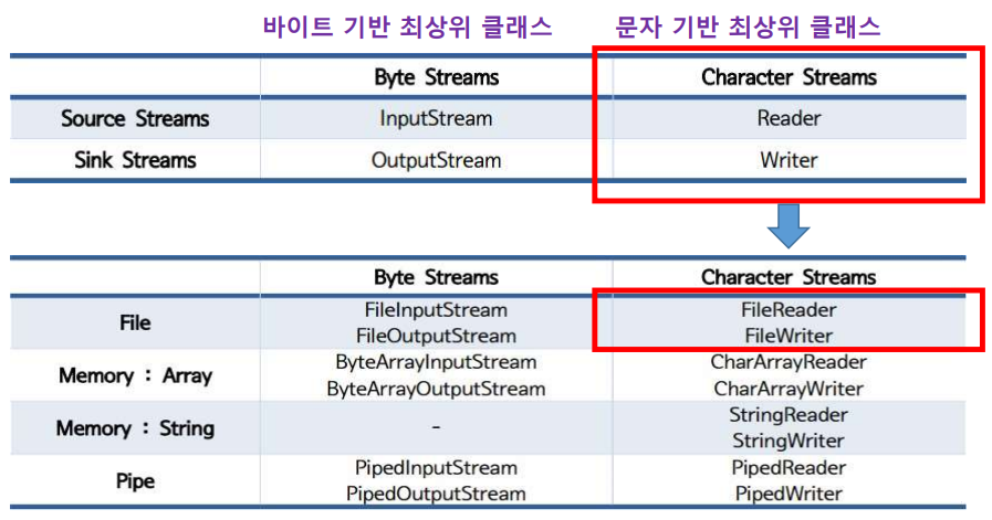 * 1. 2byte기반으로 파일을 읽어들이는 클래스 FileReader 2. 한글(문자) 형태의 파일데이터를 읽기에 적합합니다. 3.