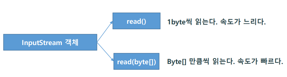 원하는 자료를 1byte 단위로 읽는 read() 메소드를 수행하면 시스템 내부적으로 버퍼를 준비하고