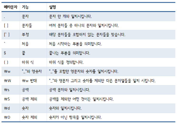 - \\w : 문자를 찾는다.