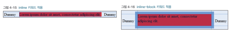 inline과 inline-block의 차이점은 inline-block은 박스요소 (크기, 너비)룰 지정할 수 있다는 점이 다르다.