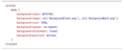 - background-attachment : 페이지가 스크롤 될 경우 배경 이미지를 고정시킬 것인지 지정