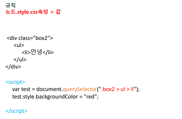 - 노드의 CSS 속성을 바꿀 때는 style 속성을 이용한다.