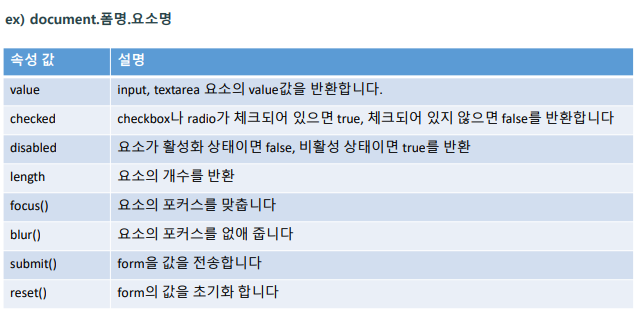 form 객체는 document 객체의 하위 객체 중 하나로, form 유효성 검사 등을 할 수 있다.