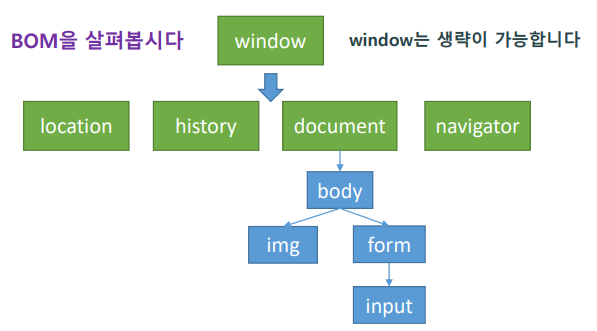 window, location, history, document 등이 포함된다.