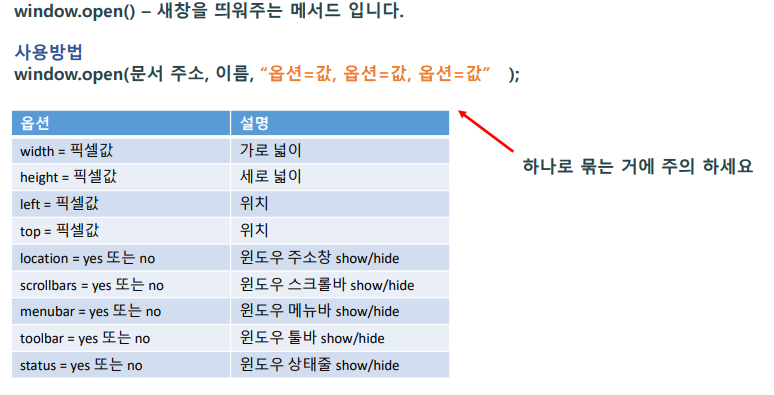 - window 객체는 웹브라우저에 대한 전반적인 정보 취득이나 제어에 관련된 객체이다.