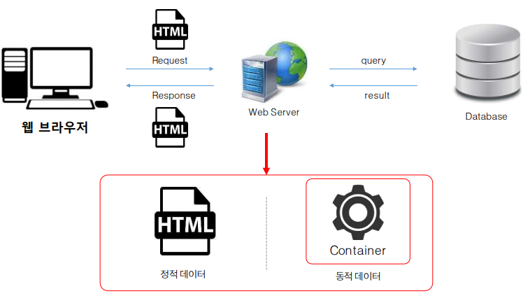브라우저가 서버의 페이지를 요청(Request)하면 서버는 해당 파일을 찾은 다음 HTTP 응답(Response)를 통해 클라이언트에 전송하는 방식으로 사용자의 요청을 처리한다.