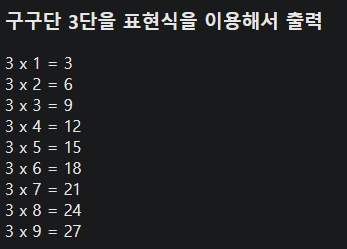 <h3>구구단 3단을 표현식을 이용해서 출력</h3>