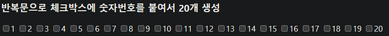 <h3>반복문으로 체크박스에 숫자번호를 붙여서 20개 생성</h3>