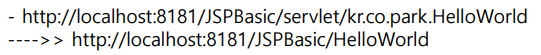 - 사용 방법은 Annotation 이용한다 (클래스 선언부 바로 위에 작성) ▶ @WebServlet("/HelloWorld")