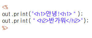 JSP 페이지가 생성하는 모든 내용은 Out 기본 객체를 통해 전송된다. JSP 페이지 내에서 사용하는 비스크립트 요소들(HTML 코드와 텍스트)이 Out 객체에 전달된다. 값을 출력하는 표현식(Expression)의 결과값도 Out객체에 전달된다. 표현식으로 대체한다.