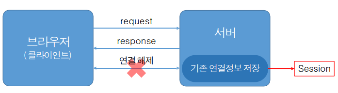 - 세션도 쿠키와 마찬가지로 서버와의 관계를 유지하기 위한 수단이다.