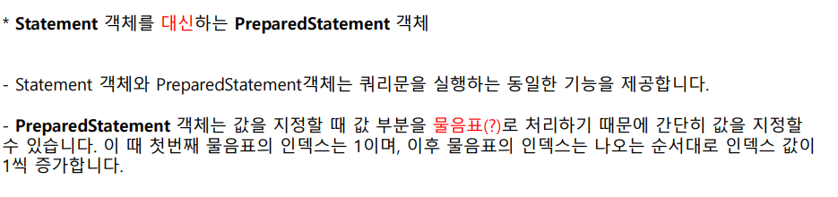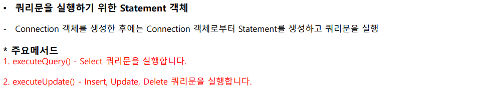 - 연결이 끝난 뒤에는 반드시 close() 메서드를 호출하여 Connection 객체가 사용한 시스템 자원을 반환해야 한다.