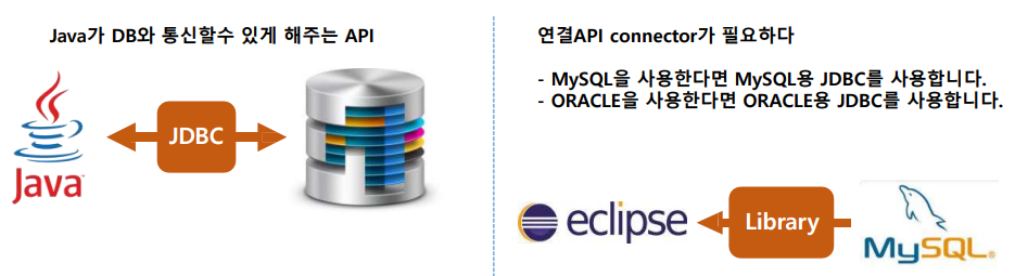 JDBC는 자바 프로그램에서 SQL문을 실행하여 데이터를 관리하기 위한 JAVA API이다.