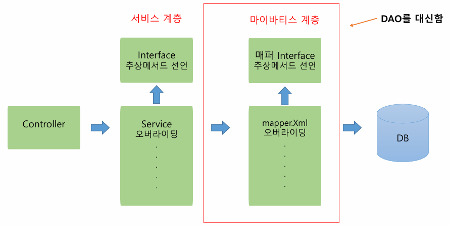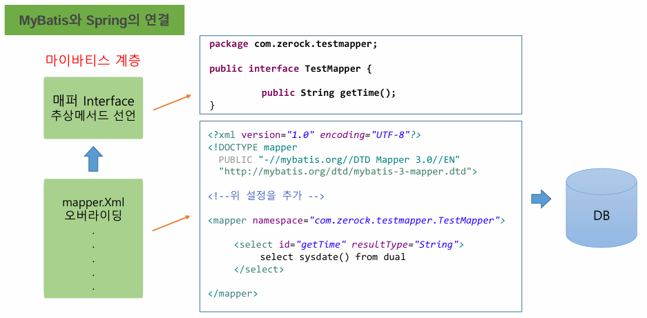 - 기존 DAO의 Interface의 구현클래스를 xml 파일이 대신한다.