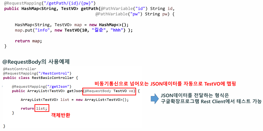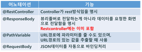@RestController Annotation은 Return에 처리하는 데이터를 조금 다른 타입으로 처리하는 형식이다.