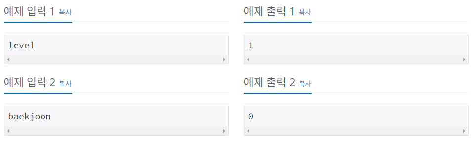 level, noon은 팰린드롬이고, baekjoon, online, judge는 팰린드롬이 아니다.
