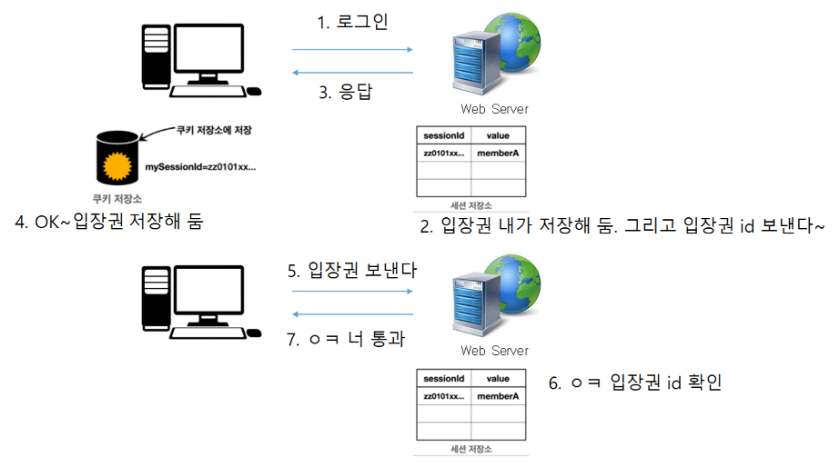 - 직원(서버)는 이전에 저장한 정보를 기반으로, 회원이 맞는 지 조회하고 입장을 허락한다.
