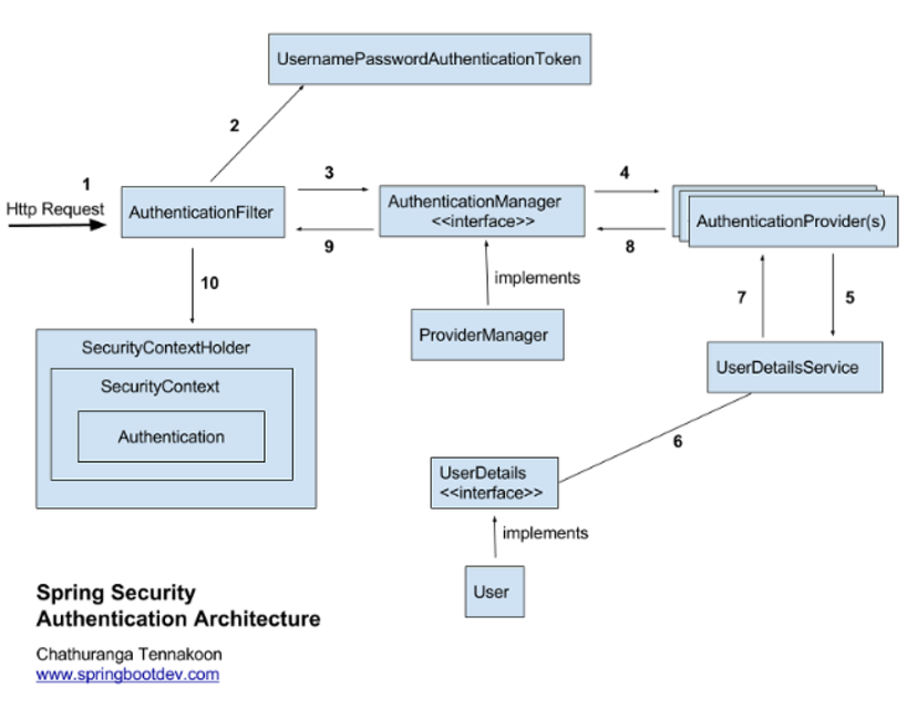 우리가 Spring Security에서 Filter를 처리하는 과정은 Authentication Filter에서 AuthenticationManager로 넘어가면서