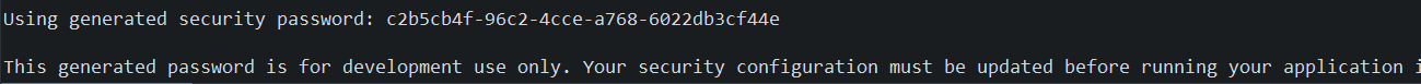 추가를 하게되면 이전에 스프링 시큐리티를 사용할 때 확인했던 것 처럼 아래와 같이 고유의 비밀번호를 발급받게 된다.