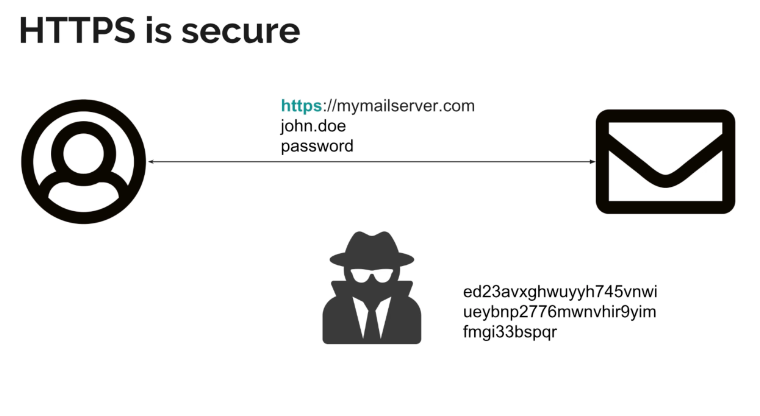 HTTPS는 데이터를 endPoints 끼리 약속한 Secret Key로 암호화해서 전송하기 때문에 악의적인 공격자가 정보를 탈취하더라도 무슨 내용인지 알 수 없다.