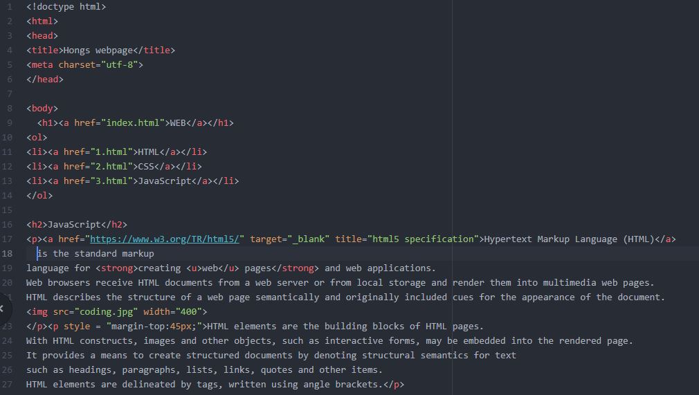 이번 HTML 연습은 유투버 '생활코딩'님의 영상을 보고 구현하였습니다.