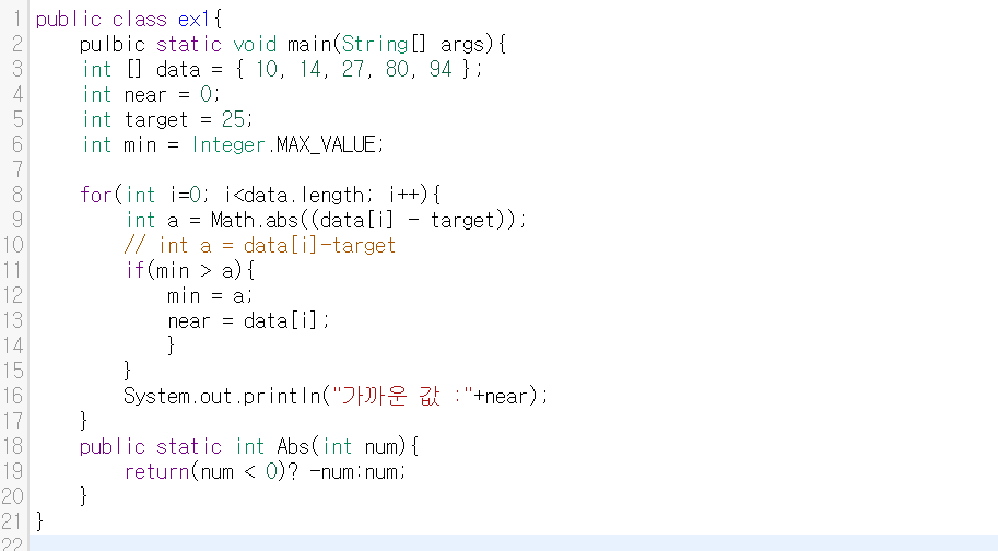 주어진 수 중에 지정한 수와 가장 가까운 값을 찾는 알고리즘