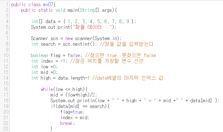 이진 검색 알고리즘 이전에 '순차탐색 알고리즘'